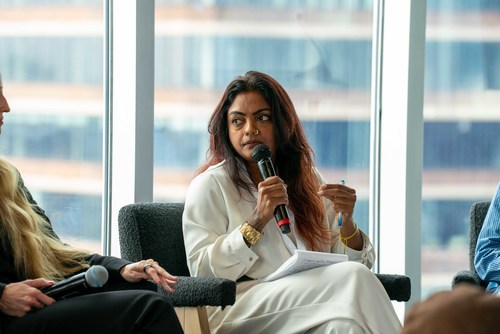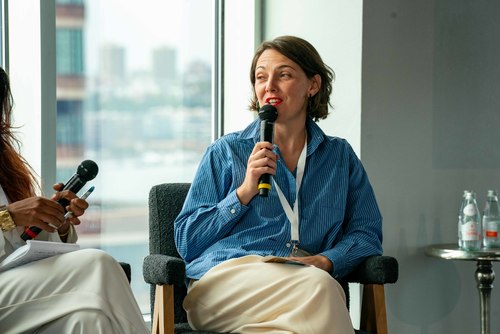 Moderated by Kerry Bannigan, President of the PVBLIC Foundation and Co-Founder of the UN Fashion & Lifestyle Network, a first discussion featured Runa Ray, designer and founder of Fashioning for Social & Environmental Justice; Vanessa Barboni Hallik, Co-CEO of Another Tomorrow; and Célia Roussin, founder of the startup Pépite Raisin. Together, they addressed the urgent need to build a new paradigm for the fashion industry, embedding sustainability and ethics at the very core of design and production processes.