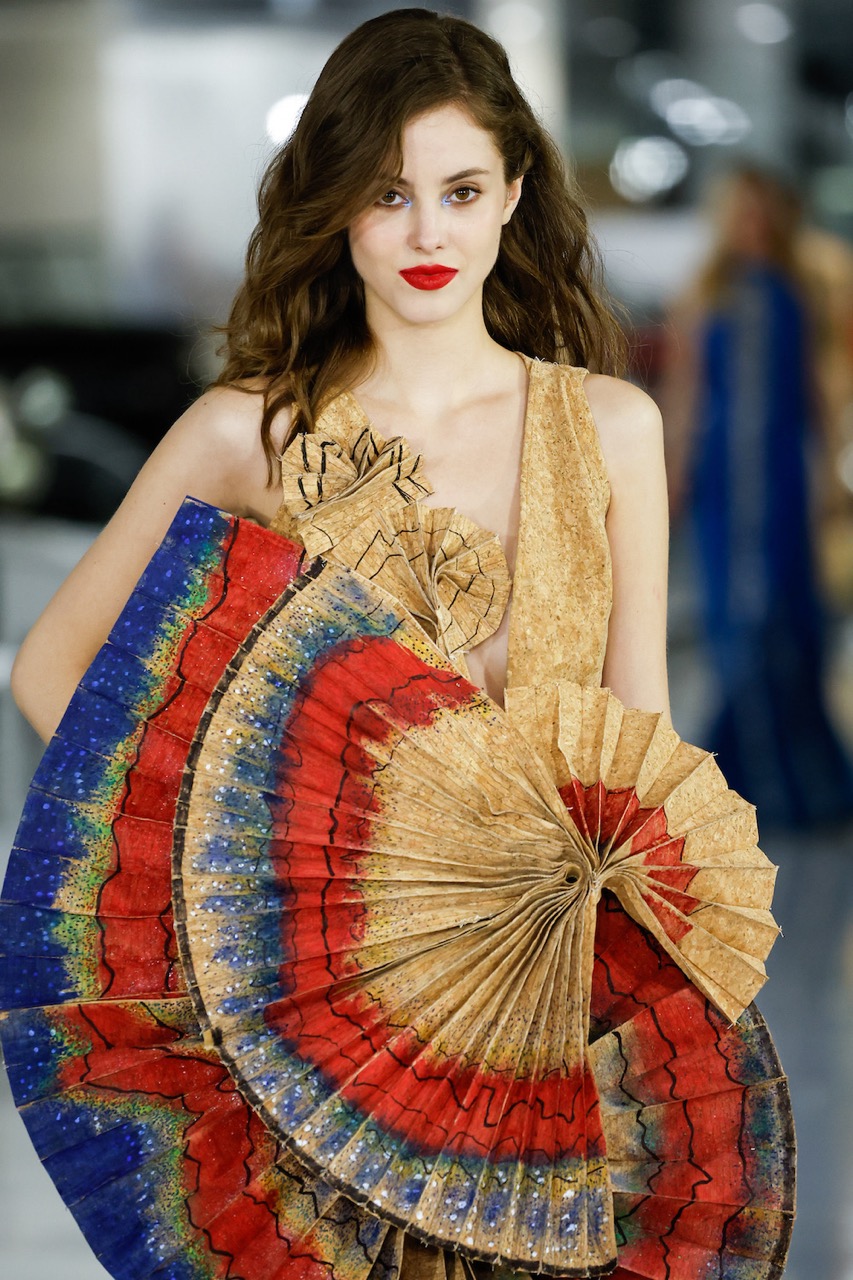 À la suite de sa visite au Centre scientifique de Monaco en mars et de ses discussions avec les scientifiques, Runa a imaginé une robe en liège avec une représentation peinte du graphique des sons d'un récif corallien en bonne santé.