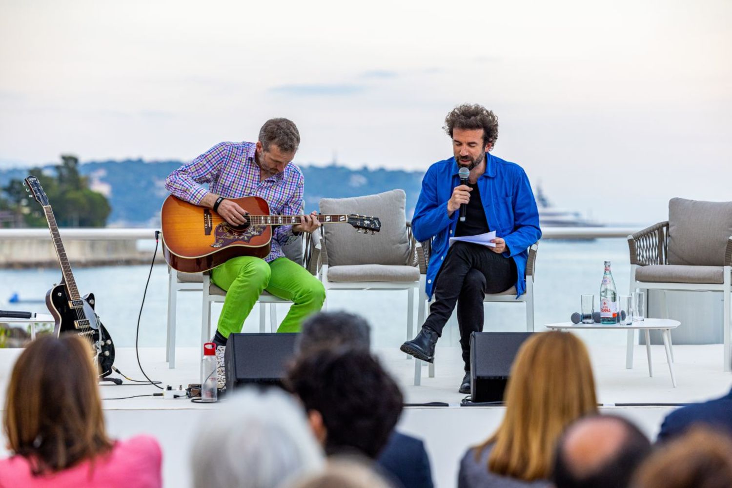 La soirée d’ouverture, le mercredi 7 juin, s’est ouverte sur un titre de Cyril Dion et Sébastien Hoog, joué en acoustique et extrait des Résistances poétiques. Une performance qui a donné le ton de la discussion entre les invités, menée par la journaliste Sarah Doraghi : à quels « nouveaux imaginaires écologiques » aspirons-nous dans un contexte de bouleversement de nos sociétés et, plus largement, de notre monde confronté à l’urgence climatique et aux catastrophes naturelles, et quelle est leur puissance de changement à l’échelle individuelle et collective ? Les voix de l’activisme, à travers les propos de Cyril Dion, réalisateur, écrivain, poète et activiste écologique, et de Magali Payen, experte en mobilisation citoyenne, fondatrice du mouvement On est Prêt, Présidente d’Imagine 2050, co-fondatrice de Newtopia, ont rencontré celles de l’art, portées par Charles Carmignac, directeur général de la Fondation Carmignac, et Olivier Covo, fondateur et directeur de Mangroove Music, producteur artistique, musicien. Le pouvoir des récits collectifs et de l’émotion partagée ont été présentés comme l’une des clés pour rendre notre futur plus désirable nonobstant les défis certains qui nous attendent. L’imaginaire a été décrit comme un outil puissant pour favoriser le changement des mentalités vers une nouvelle manière de faire société, dans le respect des limites planétaires et de la justice sociale. Dans la continuité de ces échanges, la soirée s’est terminée sur la mélodie hypnotique des textes de Cyril Dion, évoquant les vices de notre société de consommation et le désastre écologique qu’elle engendre, mais gardant toujours en ligne de mire la beauté du monde et la puissance de l’idéal, fédératrices et mobilisantes.
