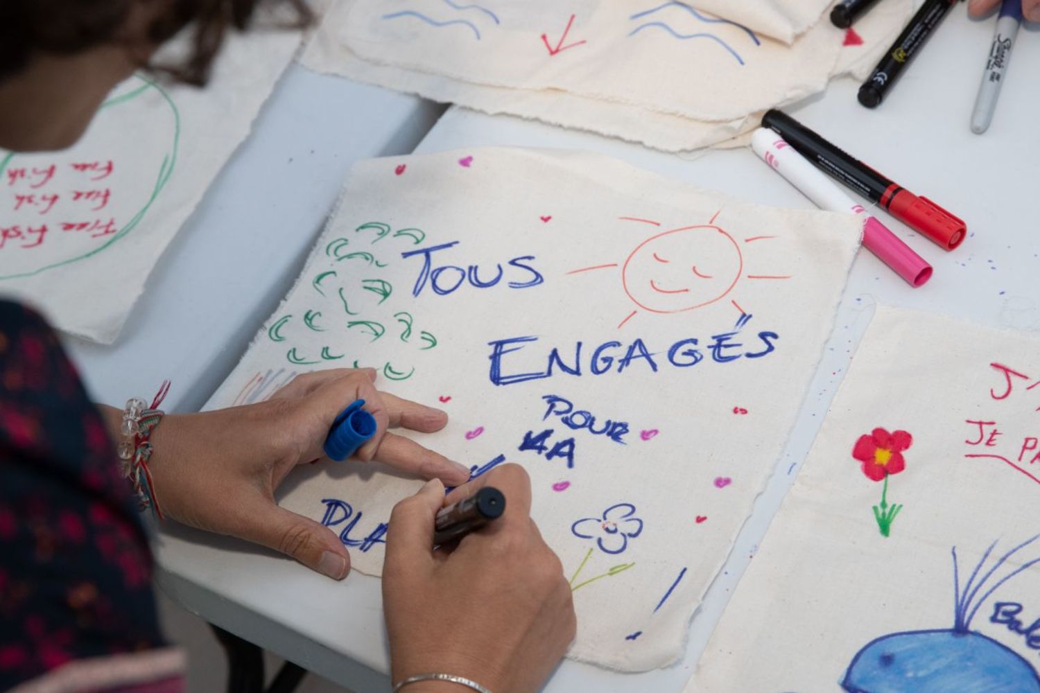 À l’attention du grand public : une activité collaborative intitulée « Ocean Flag », soutenue par la Décennie de l’océan des Nations unies, a été proposée au public du Green Shift Festival à l’occasion de la journée mondiale de l’océan. Les participants ont été invités à écrire ou dessiner sur des morceaux de tissus recyclés pour créer un drapeau océanique composés de leurs engagements vis-à-vis de l’Océan, que la fashion designer et activiste Runa Ray exposera lors de grands rendez-vous internationaux comme la COP28 afin de mobiliser et sensibiliser quant à la préservation de l’océan.